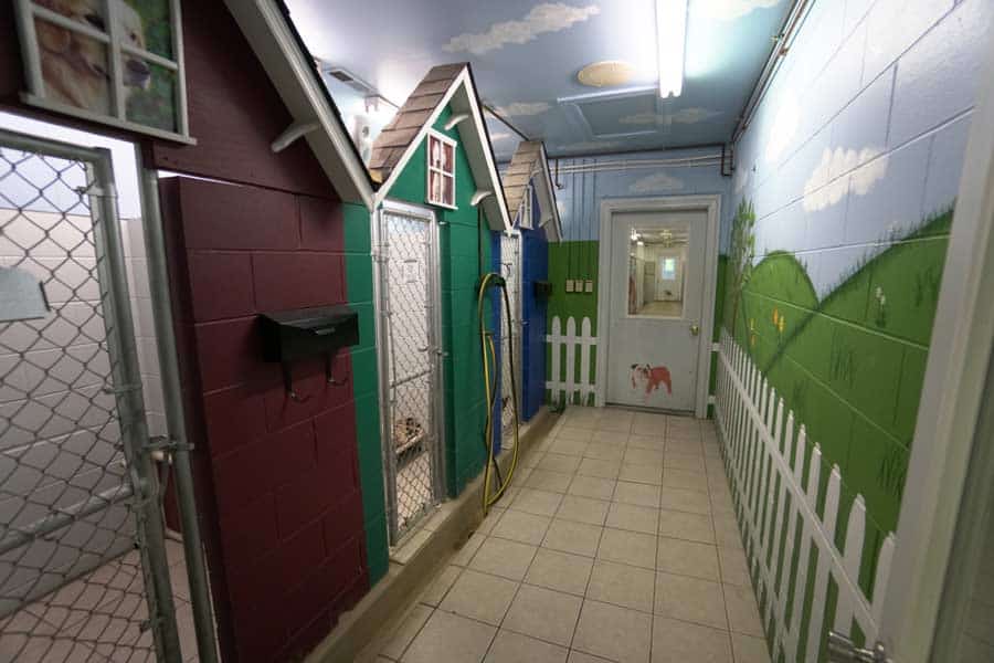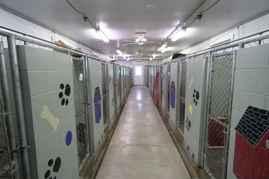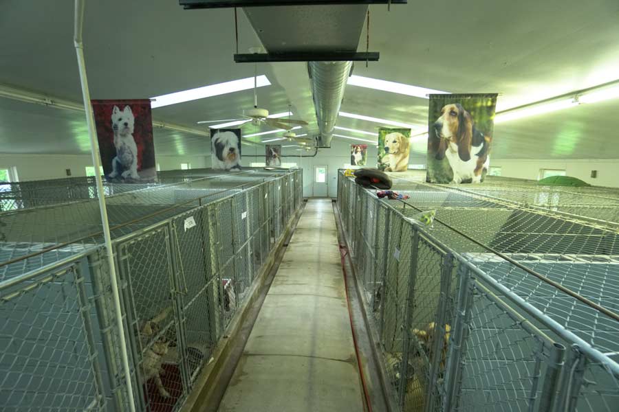 Each indoor kennel offers a spacious 5’ × 17’ run, including a 5’ × 5’ sleeping area and a 12’ × 5’ indoor exercise run—all fully climate controlled.